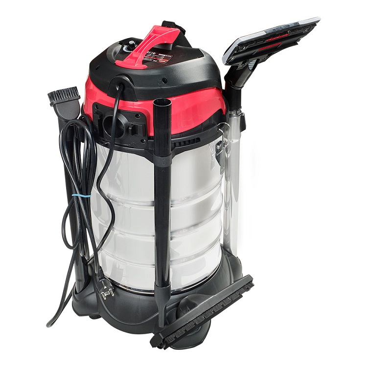 Пылесос строительный Vitals Master PS 3014SPsw — это мощный строительный пылесос для сухой и влажной уборки. Пылесос можно использовать для уборки мастерских, промышленных помещений и производить уборку в доме. Пылесос с легкостью может собирать воду вместе с мусором. Дренажная система слива воды поможет опустошить бак в считаные секунды. В системе используется инновационный продуктивный двигатель мощностью 1400 Вт. Обмотка двигателя выполнена из меди, что увеличивает ресурс и производительность двигателя. Также двигатель имеет функцию защиты от перегрева. Используя новые технологии, удалось достичь мощной силы всасывания в 20 кПа. В модели также предусмотрена розетка для подключения инструмента. Параллельно с включением инструмента включается пылесос. После окончания работы инструмента пылесос еще работает некоторое время для удаления остатков пыли, и потом отключается. В комплекте поставки есть переходник для инструмента, что облегчит его подключение к пылесосу.