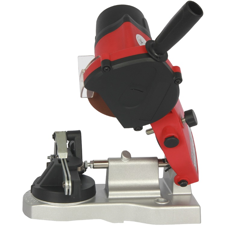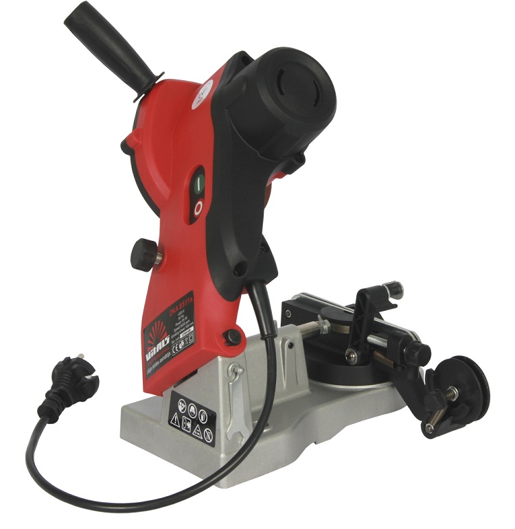 Станок имеет эргономичный дизайн, продуманную конструкцию с возможностью крепления к столу, позволяя тем самым выполнять работу с максимальным комфортом. Для освещения рабочей области используется светодиодная подсветка. Высокая точность и качество заточки цепи пил достигается за счет легкой и быстрой регулировки глубины и угла заточки, механизмов автоматической фиксации цепи, а также фиксации ее обратного хода. В работе используются точильные диски наружным диаметром 104 мм с посадочным диаметром 22,2 мм и толщиной 3,2 мм. Вопросам безопасной эксплуатации станка уделено особое внимание. Прочный пластиковый защитный кожух, прикрывающий точильный диск, позволяет безопасно наблюдать за процессом заточки и одновременно исключает возможность случайного травмирования. В комплект поставки станка включено качественно разработанное руководство пользователя, полностью отображающее порядок эксплуатации и обслуживания изделия.