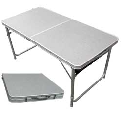 Изготовлен из алюминиевых трубок диам. 25 мм с матовым покрытием. Верхняя крышка изготовлена из MDF. Легко складывается до компактных размеров как единый комплект. Размеры: 120х60х70 см. Вес нетто: 4,57 кг. Допустимая нагрузка: 30 кг.