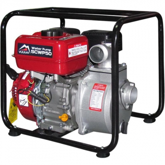 Мотопомпа Vulkan SCWP50 представляет собой мощный агрегат, с помощью которого перекачивается чистая вода для обеспечения разных нужд, с общим объемом до 30 м.куб./час. При этом, допускается наличие небольших частиц, всего до 3 мм в перекачиваемой воде. Мотопомпа оснащена одноцилиндровым бензиновым двигателем, который, при высокой производительности, потребляет весьма небольшое количество топлива. Расход топлива около 1,5 л/час. Для корректной работы двигателя рекомендуется применять топливо таких марок: А 95 и А 92. Объем топливного бака двигателя мотопомпы составляет 3,6 л. Область применения мотопомпы SCWP50: орошение, полив (садово-огородние работы), осушение (колодцы и водоемы), строительные работы и т.п. С помощью мотопомпы можно подавать воду на большую высоту до 25 м.
