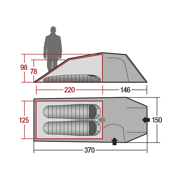 Внешняя палатка (ДхШхВ), мм: 3700 х 1500 х 980