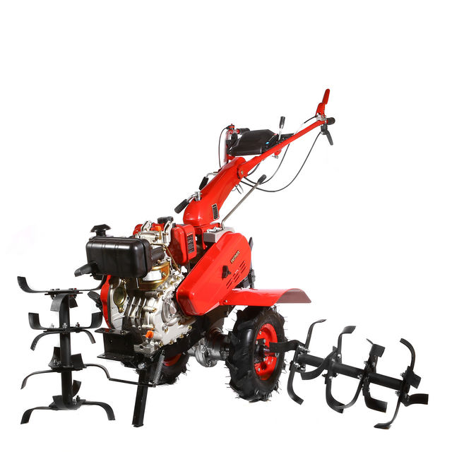 Дизельный мотоблок Weima WM 610 относится к типу профессиональных мотоблоков и позволяет реализовать все функции, присущие как легким, так и тяжелым мотоблокам. Использовать можно не только для домашнего хозяйства, но и для значительно больших объемов работ и разнообразных функций. Все узлы мотоблока изготовлены с запасом прочности для постоянного регулярного использования. Установлен дизельный двигатель 178F. Запускается с ручного старта. Установлен воздушный фильтр грибкового типа. Привод от двигателя ременного типа. Особенность мотоблока WM 610 в том, что установлено 3 ремня, а не 2, как на большинстве мотоблоков. Дополнительный ремень без потери тяговой мощности агрегата можно перебросить на различное навесное оборудование, например, роторную газонокосилку или использовать мотоблок стационарно. Спереди и сзади мотоблока установлены дополнительные мощные крепления для навесного оборудования.