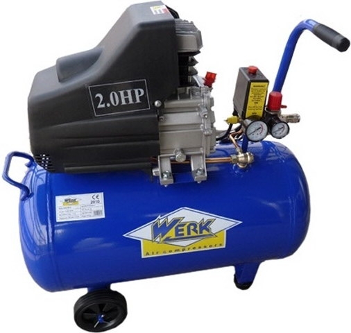 Бытовой масляный компрессор WERK BMW-24, предназначен для подачи сжатого воздуха, для различных пневматических инструментов. Чаще всего модели с небольшим объемом ресивера, используются в домашних условиях, например, он станет незаменимым помощником при проведении ремонтных или строительных работ: на даче, в частном доме, гараже.Несмотря на небольшие габаритные размеры и объем резервуара, компрессор имеет высокий уровень мощности на 1.5 кВт. За одну минуту он способен обработать до 200 литров воздуха. Такой аппарат с легкостью справится с покраской и очисткой поверхностей любой сложности, используя пневмошлифмашину или пневмокраскопульт. Пневмодрелью, можно просверлить аккуратное отверстие, или сделать в стенах штробы под проводку.Поршневой компрессор питается от стандартной бытовой сети напряжением 220В. В комплект поставки входят два транспортировочных колеса и прорезиненная рукоятка, что значительно упрощают его использование, позволяя перемещать агрегат из одного места на другое, не прилагая к этому максимальных усилий и не задействуя дополнительных людей.