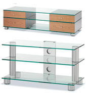 Специальные технологические приемы и разные дизайнерские подходы к проектированию рождают товарное разнообразие: монументальные и ажурные, легкие и неподъемные, стильные и классические конструкции могут стоить и $150, и $1500… Несколько индустриально выглядит дизайн стоек Sound Organisation и Sound Style. Основной материал — металлические крашеные пластины и стекло. Напротив, очень по-домашнему уютны стойки Aavik (используется натуральный шпон). Элегантные решения предлагают Apollo, Atacama, Empire… Подобный подход к оформлению позволяет оттенить собственно вид высококлассной аппаратуры. Несколько разнообразит внешний вид стойки наклон опор; этот прием используют многие фирмы. Классический пример — подставка для телевизора Lambda немецкой фирмы Schroers&Schroers. Аналогичные приемы плюс деревянные конструкции дают очень интересный результат. Здесь надо упомянуть, что наиболее дорогие решения — из стекла и натуральных материалов (камень, шпон ценных пород дерева).